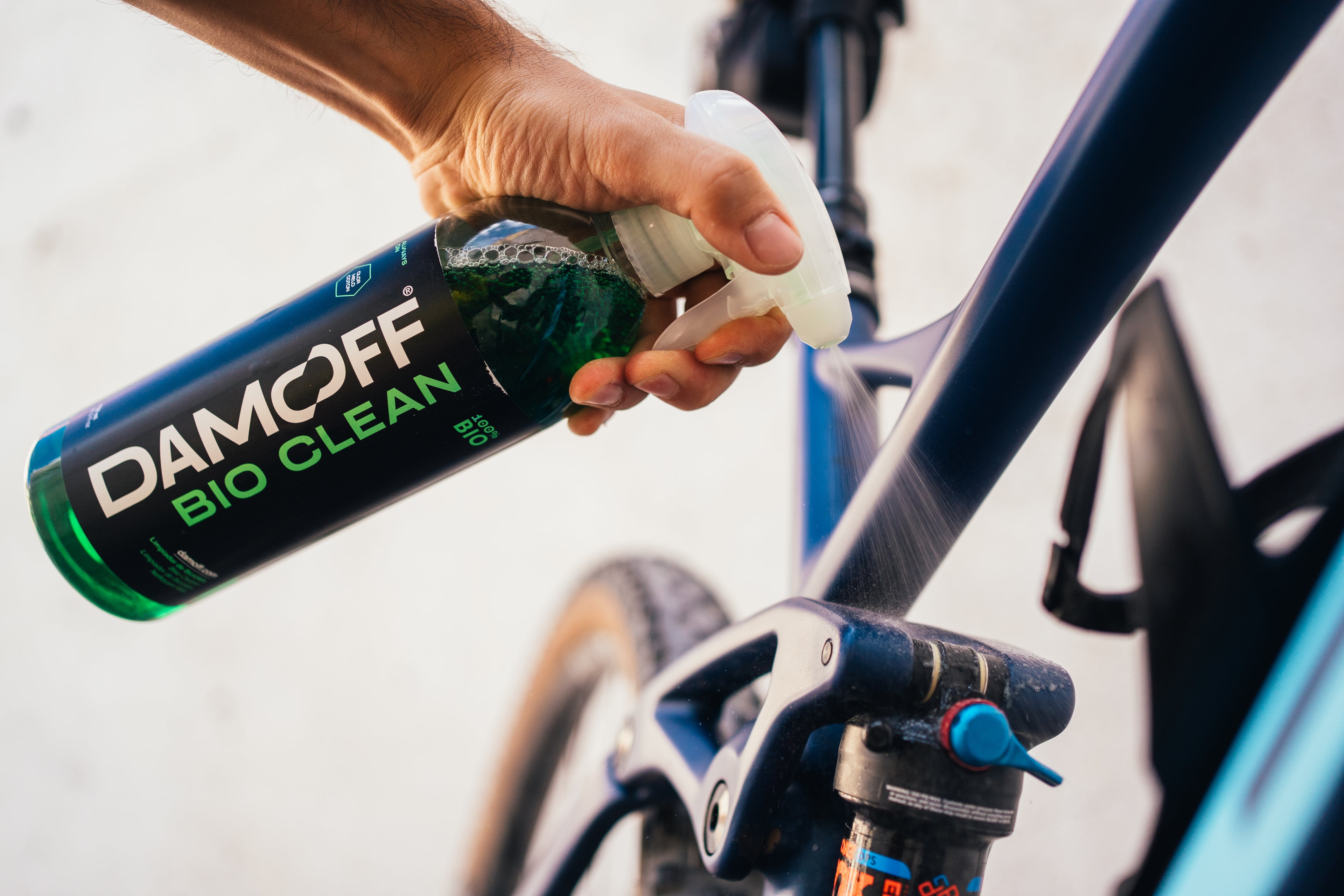 - Pulverizar Damoff Bio Clean con la bicicleta aún húmeda.