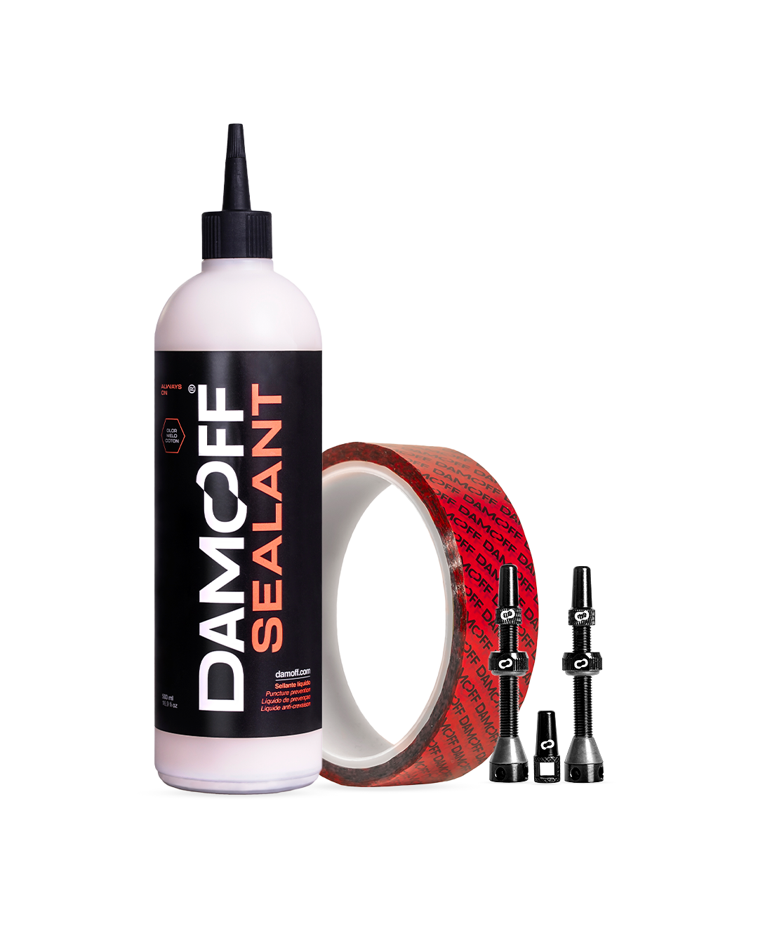 Convierte tus ruedas al sistema tubeless con todo lo necesario en un solo pack. El Damoff Tubeless Ready Kit incluye: